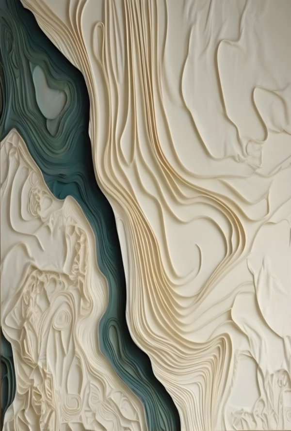 Tra le pieghe sinuose di questa piastra, la materia racconta l’incontro primordiale tra terra e abisso🌊. Le superfici avvolgenti sembrano sussurrare un viaggio antico, dove il vento scolpisce valli segrete e il tempo si deposita in strati di ricordi. Sul confine tra il bianco e il blu profondo, si avverte il passaggio di una corrente invisibile che accarezza il silenzio e risveglia la meraviglia💭.
